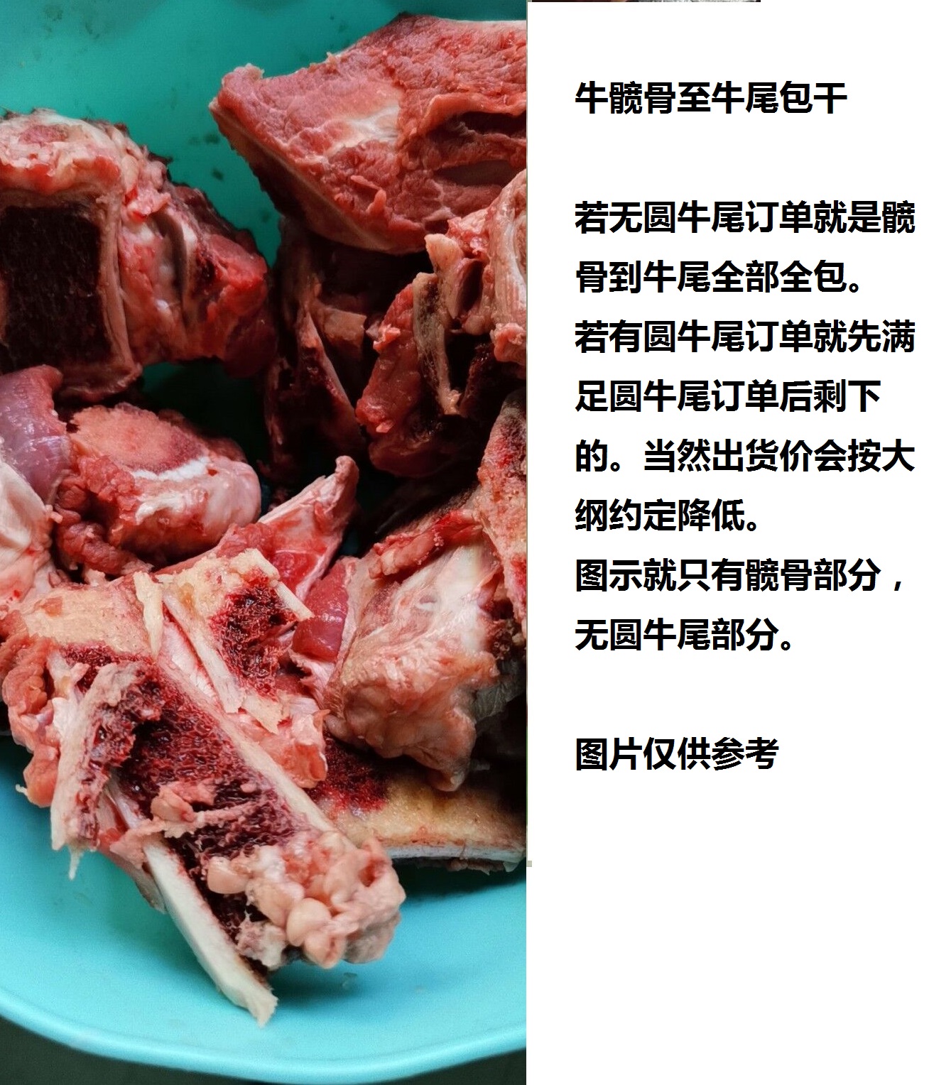 做工标准:北月村的牛尾标准是:砍到髋骨,去皮,砍成不大于15厘米长宽的块(截)。我们分装时尽量髋骨与圆的尾骨均衡,但还是不能保证均衡的效果。圆尾骨有另出时,包干货按大纲规则优惠。另,此货类型按大纲约定为志愿者礼品。仅当志愿者转让才有分配。但,通常都会尽量转让的。